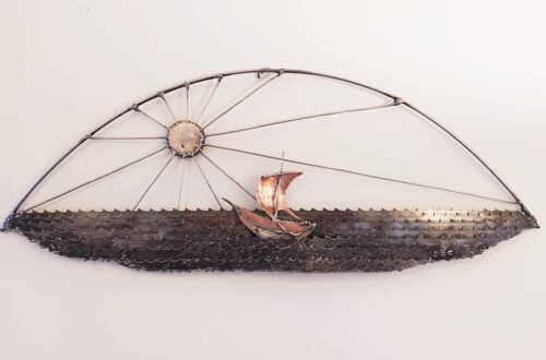 "Off to Hy Brasil!" 35 x 90cm steel, bronze, copper, aluminium#sculpture #sculptureart #metalart #irishartist #northeastart #recycledart #newcastleart #2dsculpture #wallsculpture #welding #weldart #landscapeart #seascapeart